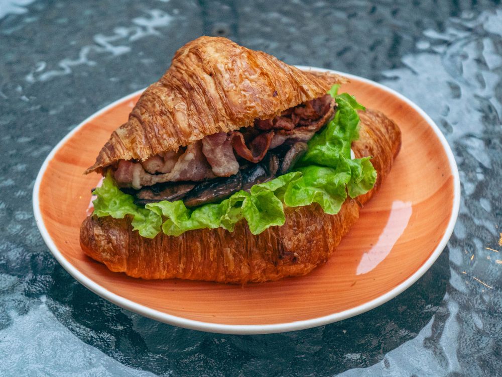 Круассан с беконом и грибами