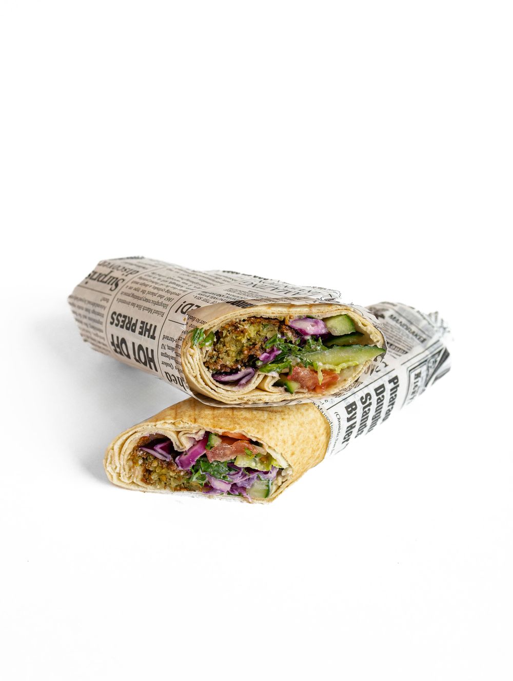 Лаваш, фалафель 5/3 шт., свежие овощи, соус кунжутный, зелень
